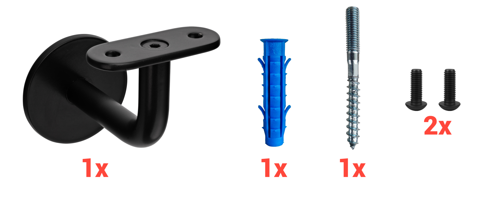 Ze względu na rożnorodne techniki wykonania ścian u klientów, do zestawu nie dołączamy kołków montażowych do zamocowania podpory do ściany.