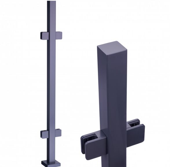 Słupek systemowy 40x40 SAMOTNIK ze stali nierdzewnej AISI 304 z uchwytami zaciskowymi do zamocowania szkła w kolorze antracyt RAL 7016 gładki mat