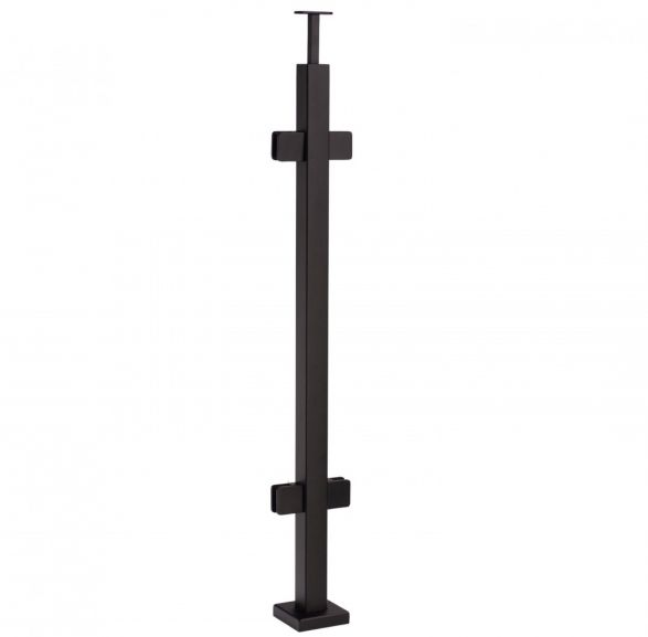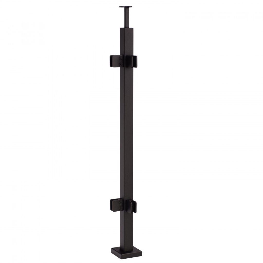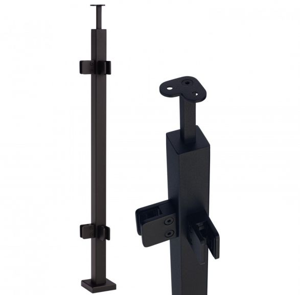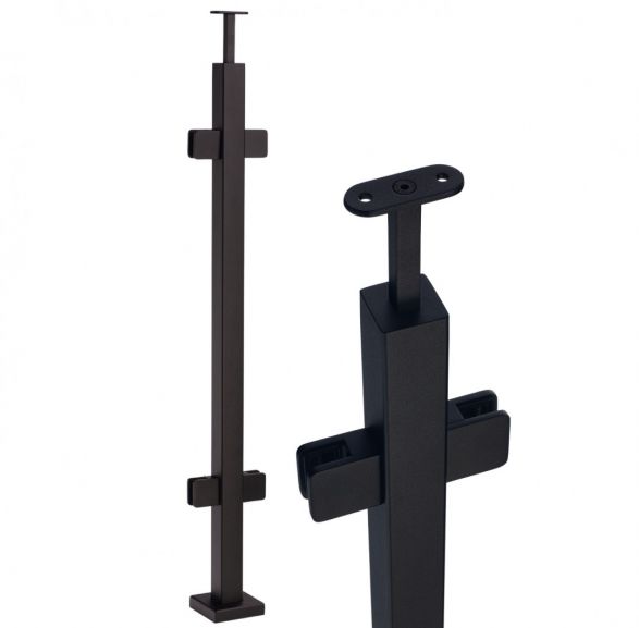 Słupek systemowy ze stałym trzpieniem z blaszkami do zamocowania poręczy z profilu lub drewnianej z uchwytami zaciskowymi do zamocowania szkła