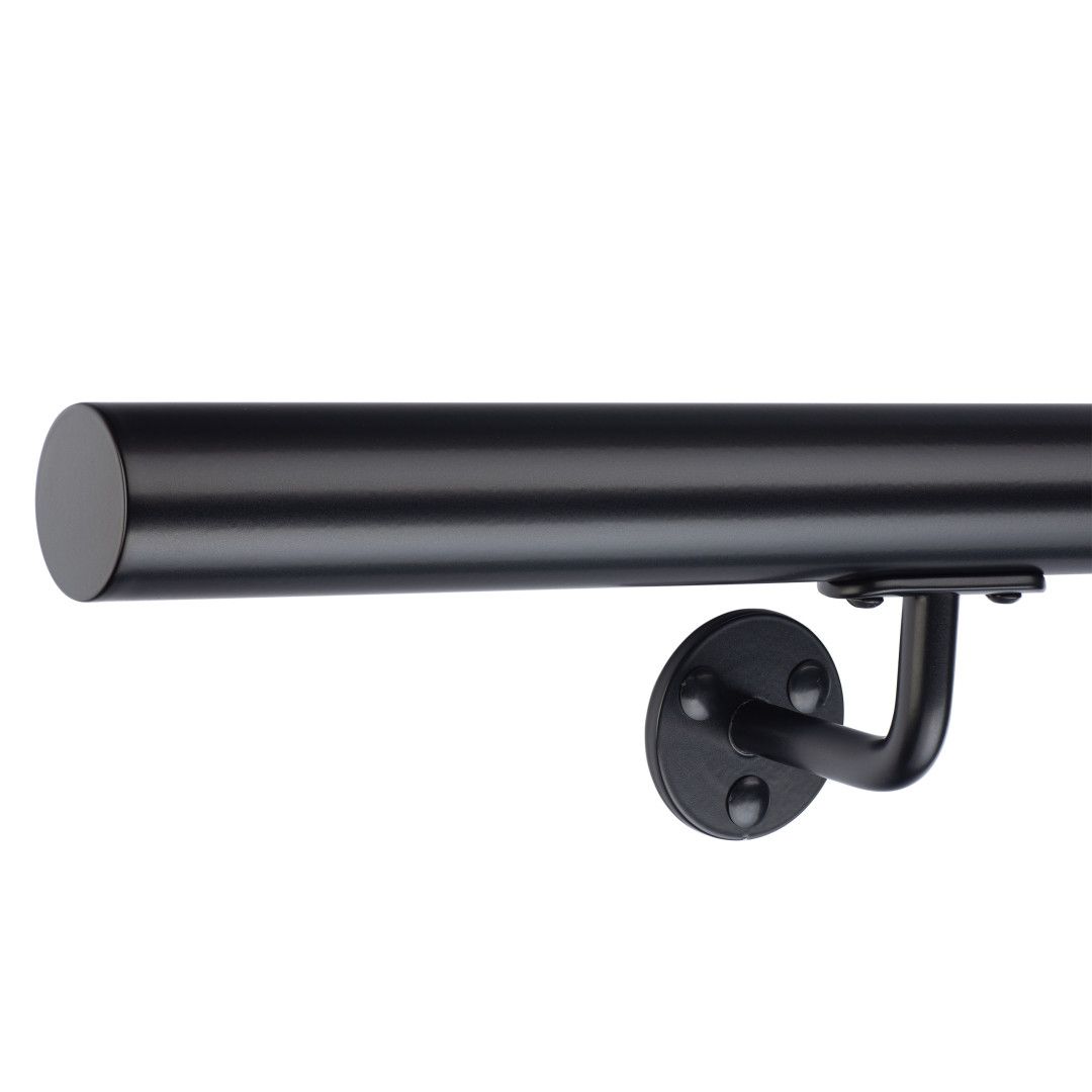 Poręcz schodowa ścienna ze stali nierdzewnej czarna w stylu LOFT z zaślepką płaską mocowana na 3 otworach