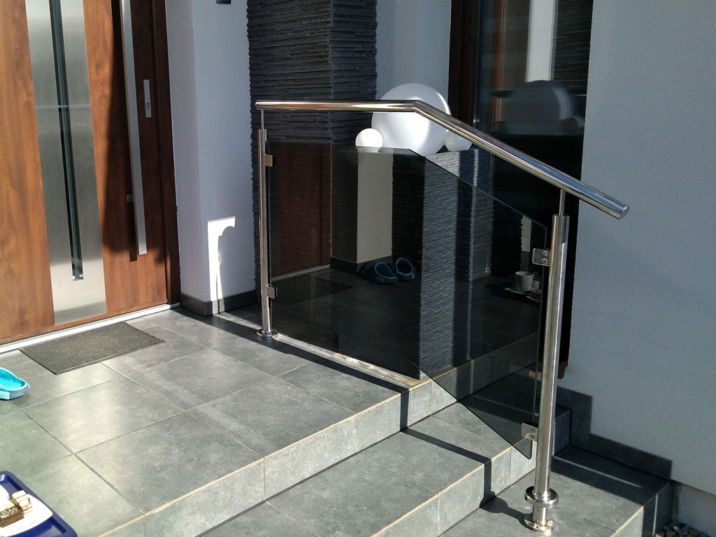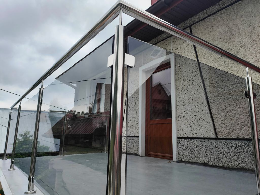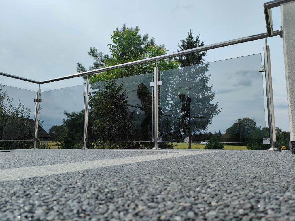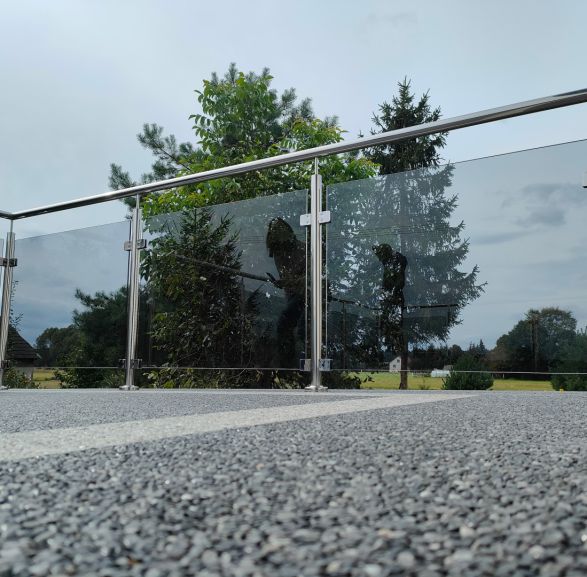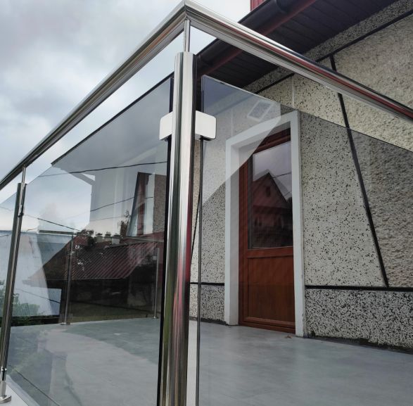 Balustrada szklana na słupkach fi 42,4 z poręczą - polerowana
