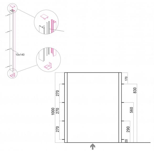 Profil naokienny 100cm do balustrady francuskiej - wykończenie szczotkowane