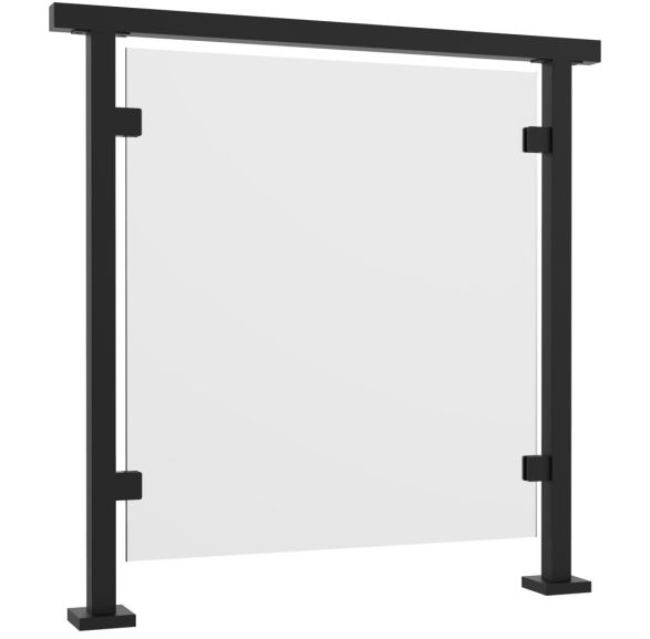 Balustrada szklana na słupkach 40x40 z mocowaniem poręczy - czarny RAL 9005