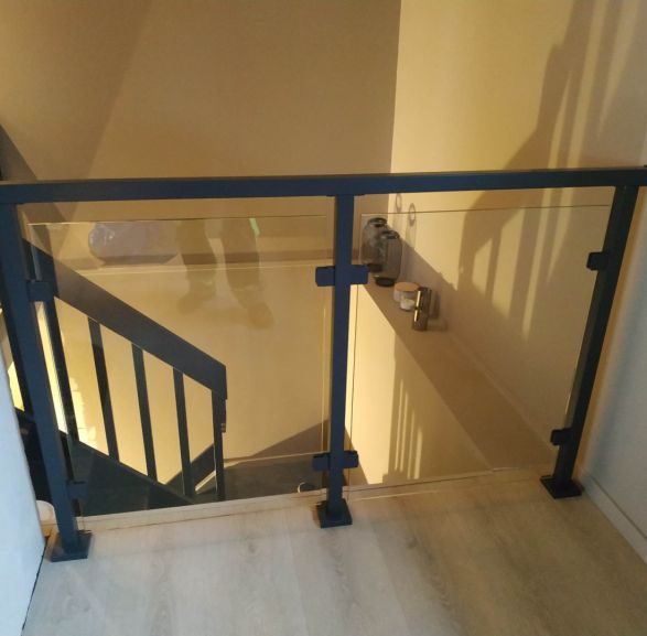 Balustrada szklana na schody, balkony i tarasy - słupki kwadratowe z poręczą czarny Loft