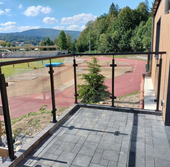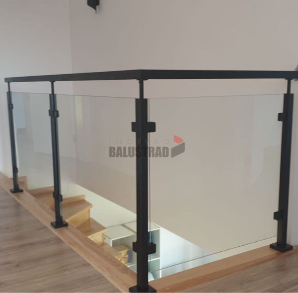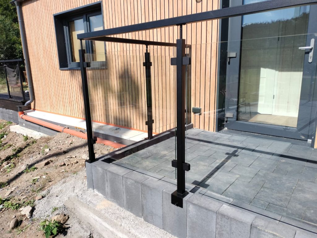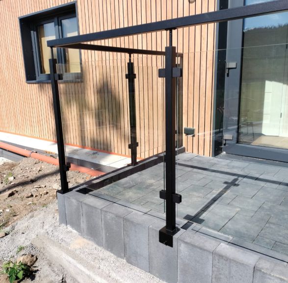 Balustrada szklana na słupkach 40x40 z poręczą - czarny RAL 9005