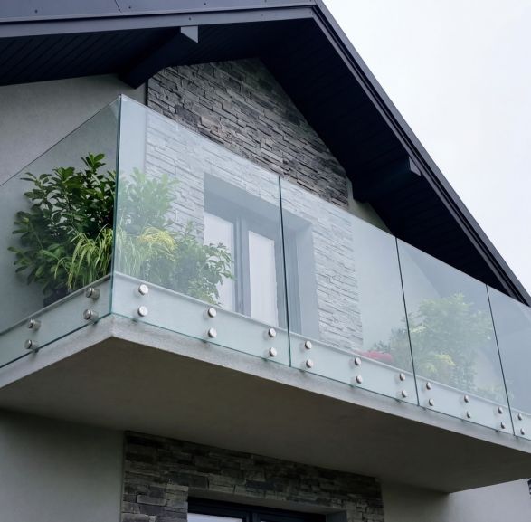 System balustrad całoszklanych z punktowym mocowaniem fi 50 mm to ekskluzywna forma montażu, polegająca na mocowaniu tafli szkła do czoła balkonu przy użyciu rotul. Całość prezentuje się wyjątkowo lekko i nowocześnie, z zachowaniem pełnej transparentności bez widocznych profili. Rozwiązanie idealne dla nowoczesnej architektury i projektów premium. Każda balustrada wykonywana jest na indywidualne zamówienie.