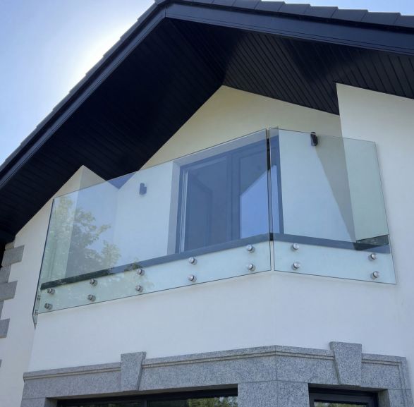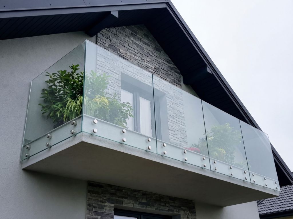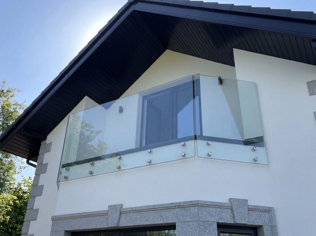 Balustrada całoszklana na rotulach - eleganckie wykończenie szlifowane