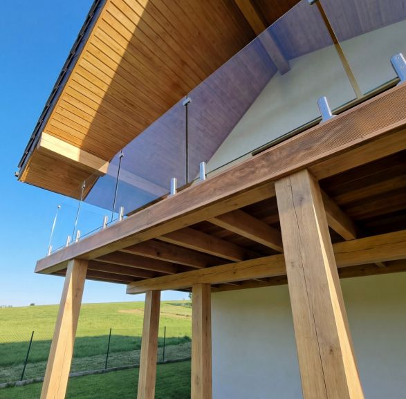 • Panoramiczny widok: brak pionowych słupków między taflami szkła zapewnia 100% przejrzystości i niczym niezasłonięty krajobraz.