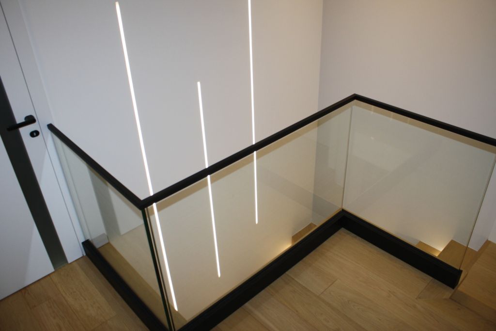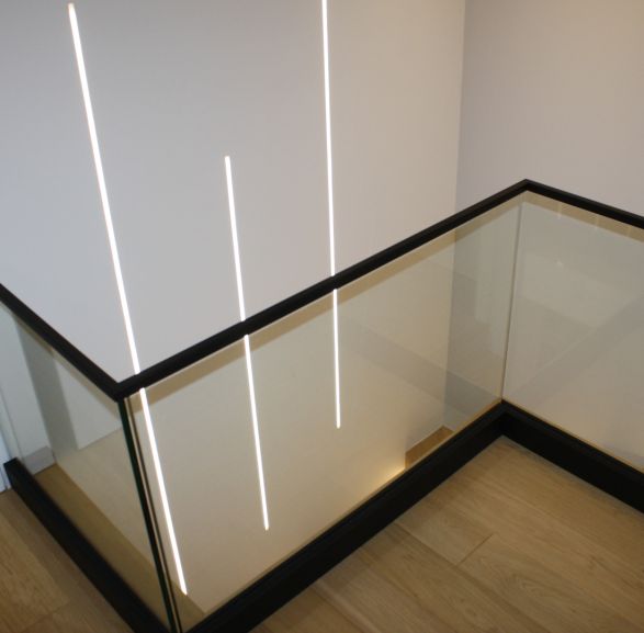 Balustrada szklana na listwie aluminiowej "U" do samodzielnego montażu. Jako producent balustrad stosujemy system montażu liniowego, który tworzy efekt jednolitej tafli szkła i podkreśla nowoczesny, loftowy charakter balustrady. Listwa montażowa, malowana proszkowo na kolor czarny RAL 9005, jest wykonana z wytrzymałego aluminium, co gwarantuje wysoką nośność i stabilność przez długie lata. Dzięki solidnemu wykonaniu balustrada sprawdzi się zarówno wewnątrz budynków, jak i na zewnątrz.