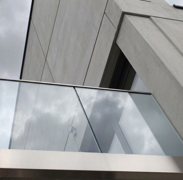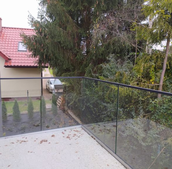 Balustrada szklana na listwie aluminiowej UB do samodzielnego montażu. Jako producent balustrad stosujemy system montażu bocznego, który pozwala zachować pełną powierzchnię użytkową balkonu i tworzy efekt jednolitej tafli szkła. Listwa montażowa w wykończeniu szlifowanym jest wykonana z wytrzymałego aluminium, co gwarantuje wysoką nośność i stabilność przez długie lata. Dzięki solidnemu wykonaniu i eleganckiej powierzchni w satynie, balustrada idealnie podkreśla minimalistyczny charakter budynku.