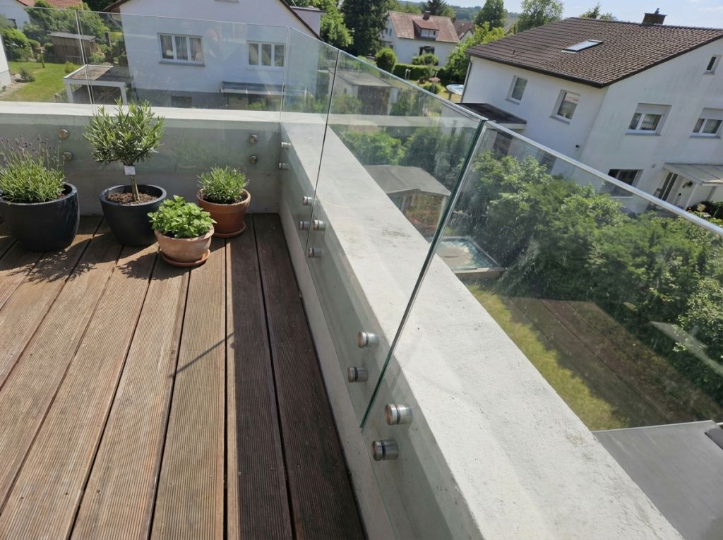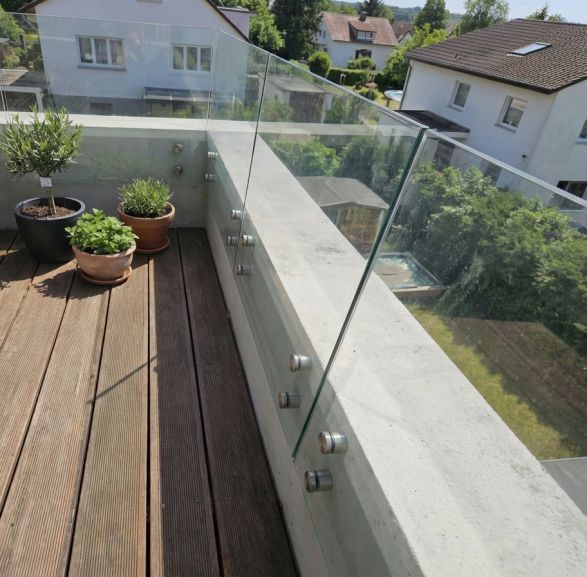 • Na balkonach i tarasach – dzięki montażowi do boku płyty, balustrada nie zabiera miejsca na posadzce, pozostawiając całą powierzchnię do wykorzystania.