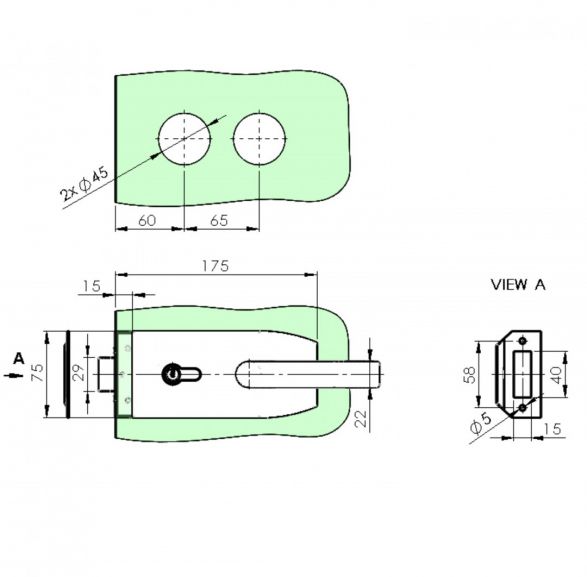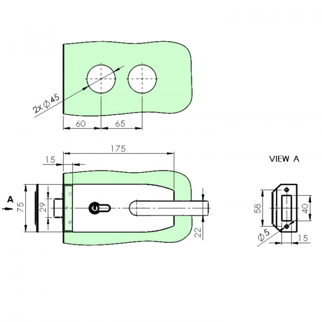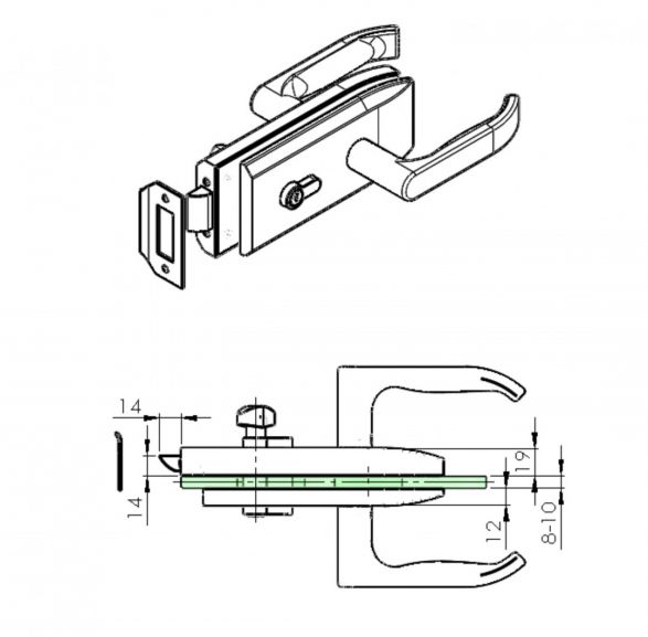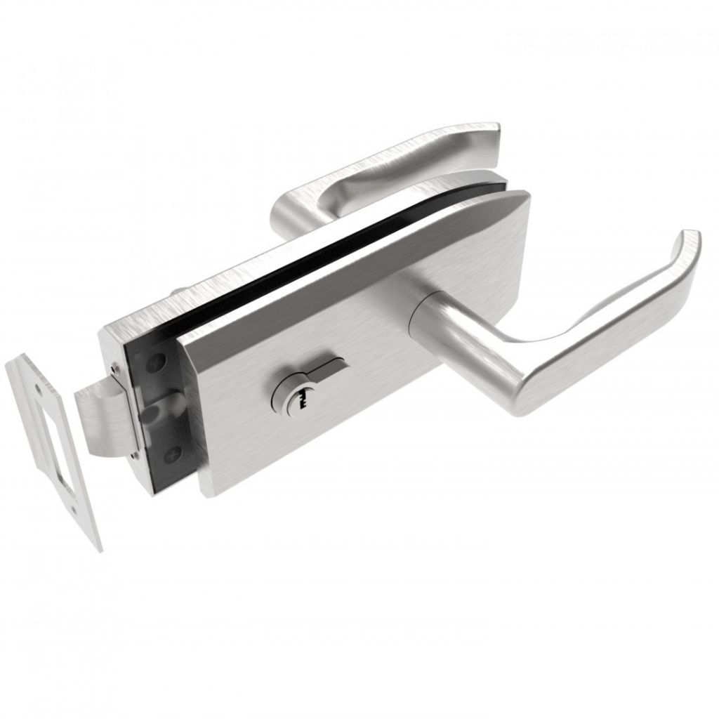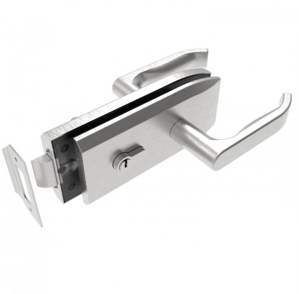 - Zamek z wkładką cylindryczną dla grubości szkła 8, 10, 12 mm.