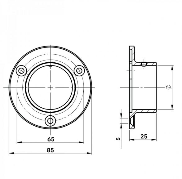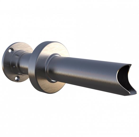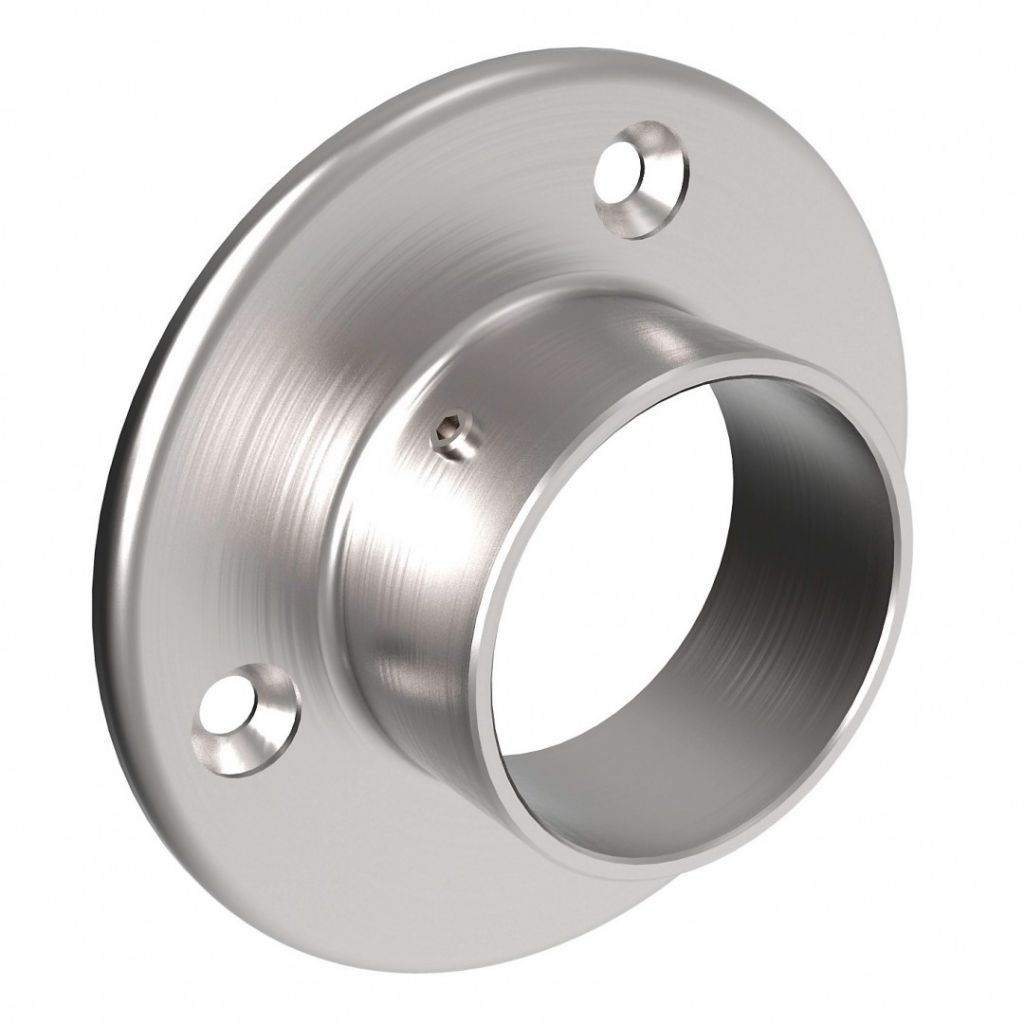 Mocowanie osiowe poręczy do ściany przeznaczone na rurę o średnicy 42,4 mm. Kołnierz przyścienny wykorzystywany jest w celu zamocowania rury do ściany.