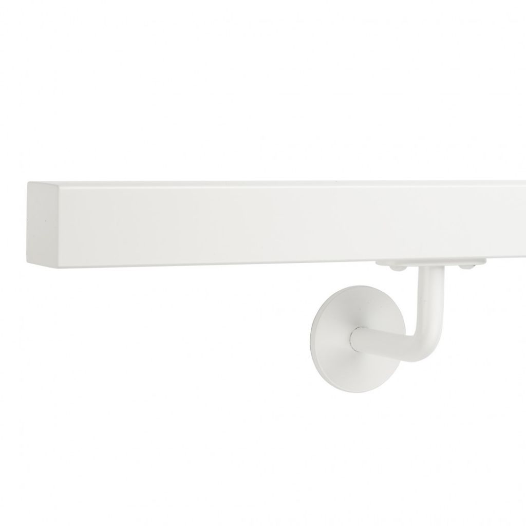 Poręcz ścienna ze stali nierdzewnej w stylu LOFT z zaślepką płaską biały RAL 9016 gładki mat 40x40mm do samodzielnego montażu