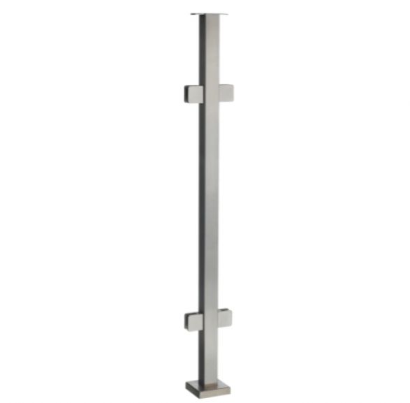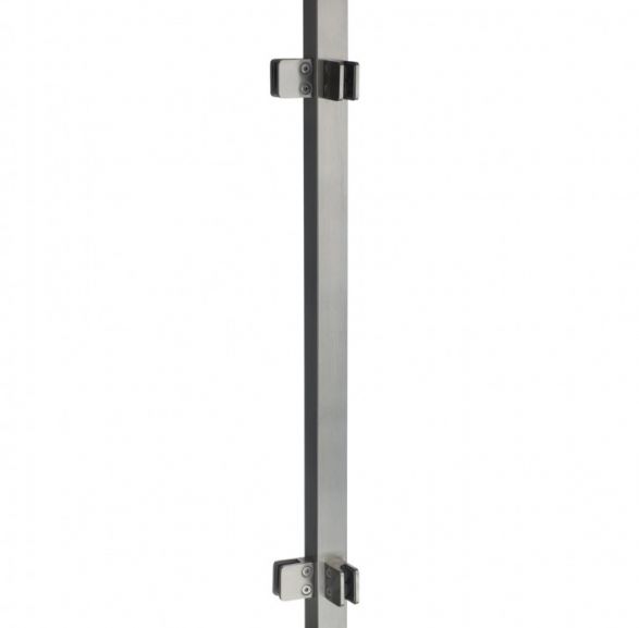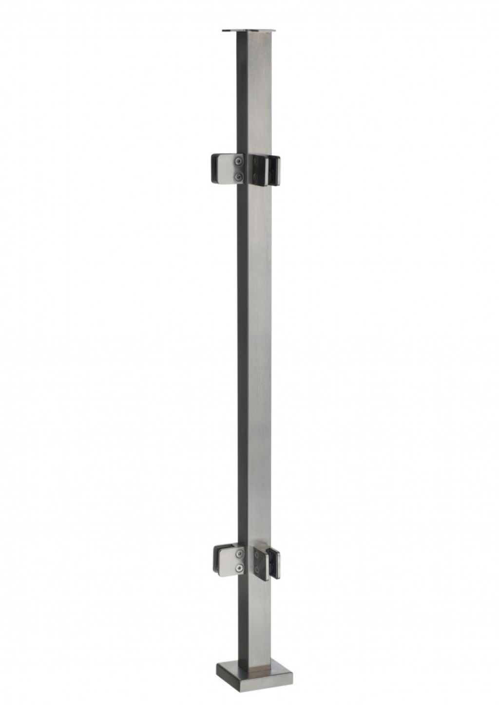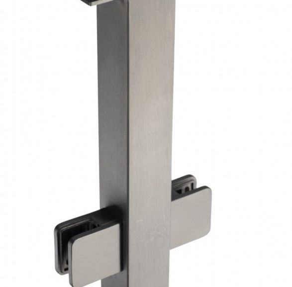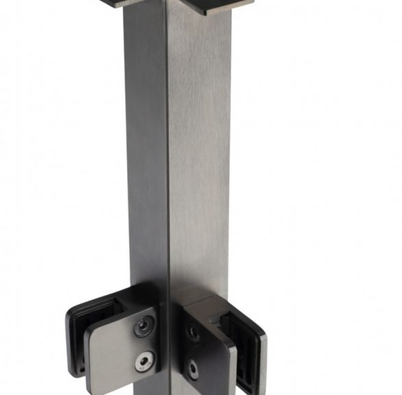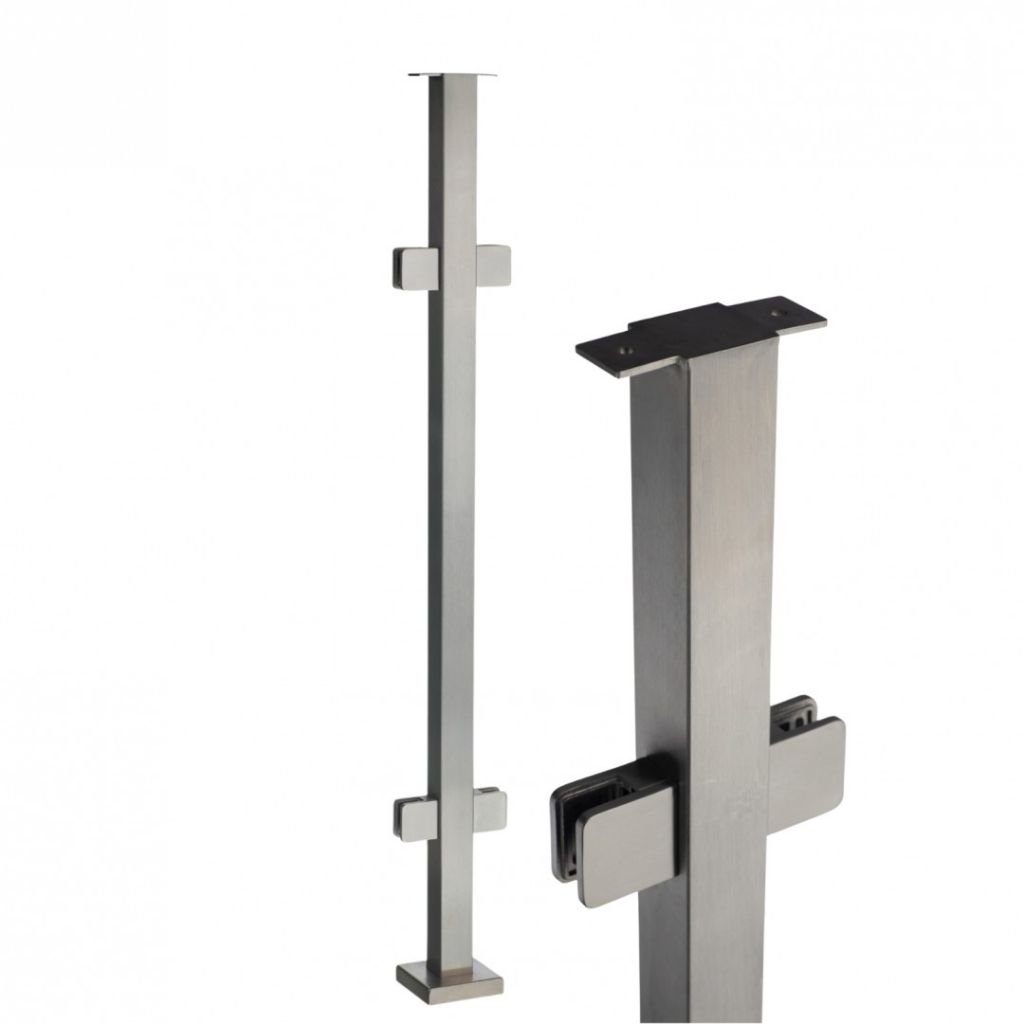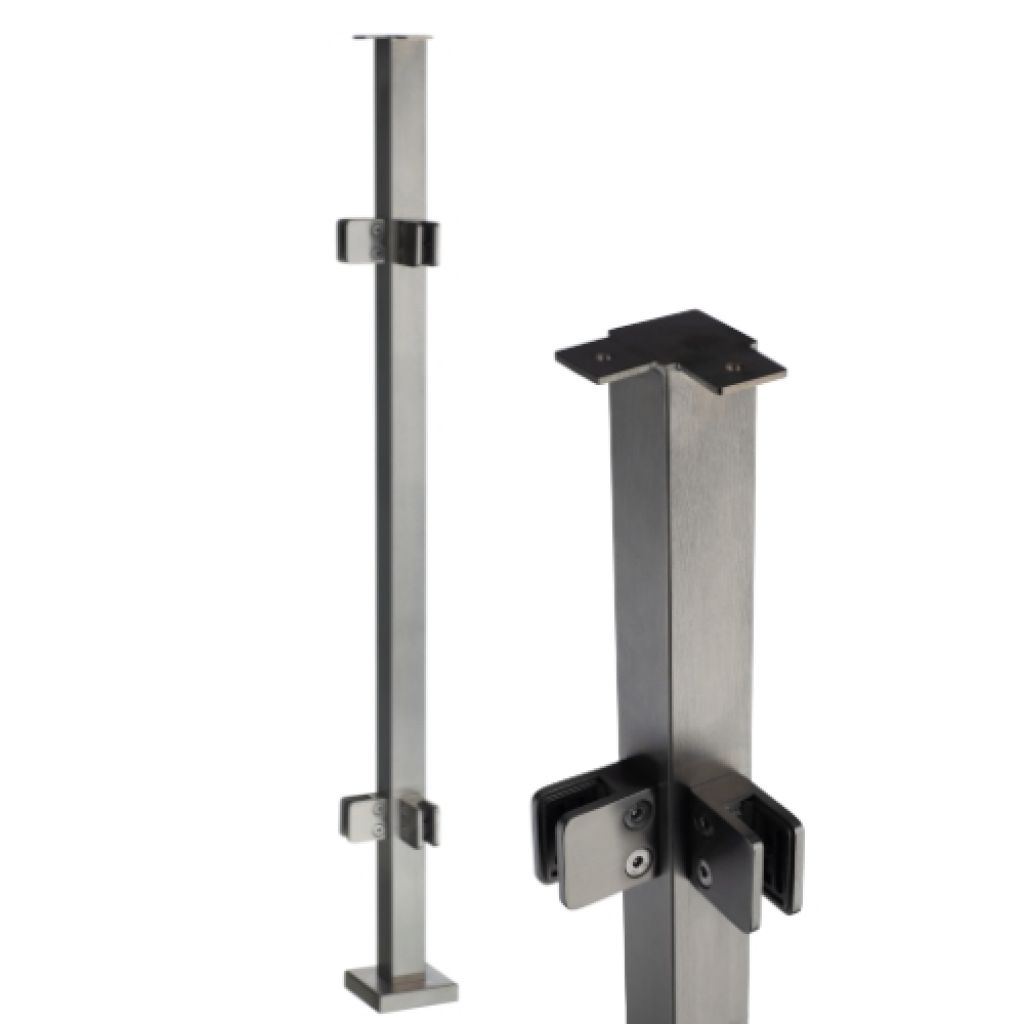 Słupek systemowy z blaszkami do zamocowania poręczy z profilu lub drewnianej z uchwytami zaciskowymi do zamocowania szkła