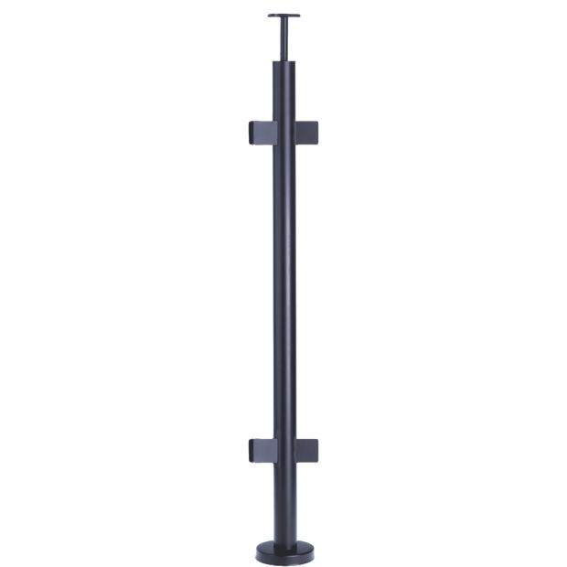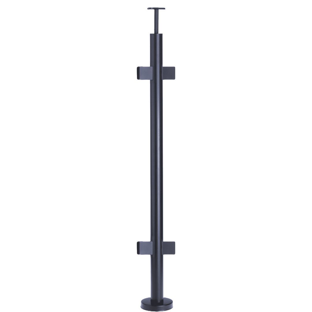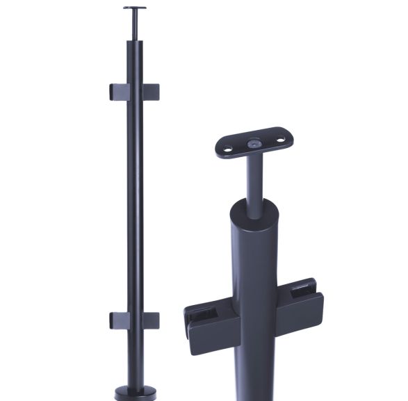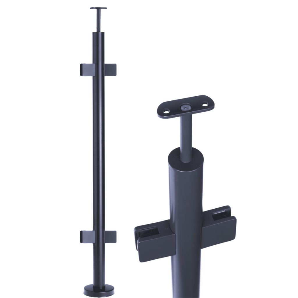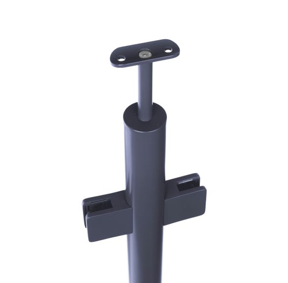 Słupek balustrady szklanej fi 42,4 mm z podporą poręczy w stylu loft - antracyt RAL 7016 gładki mat