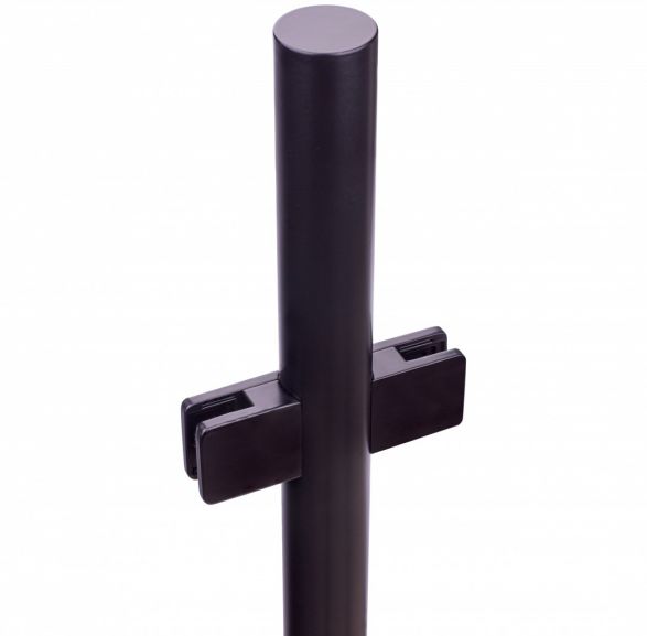 Słupek systemowy Ø42,4 SAMOTNIK ze stali nierdzewnej z uchwytami zaciskowymi do zamocowania szkła w kolorze czarnym RAL 9005 gładki mat
