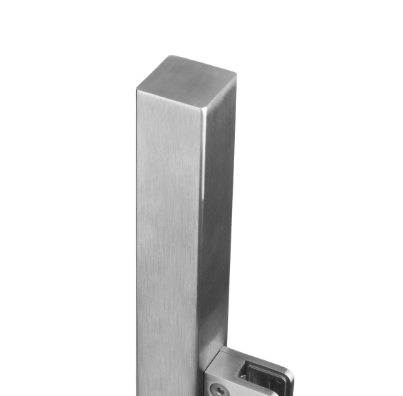 Słupek balustradowy z bocznym mocowaniem to w pełni przygotowany do montażu element systemu balustrad szklanych. Spawana konstrukcja ze stali nierdzewnej AISI 304 gwarantuje wysoką nośność, a uchwyty 45 × 45 mm stabilnie zaciskają szkło o grubości 6 – 10,76 mm.
