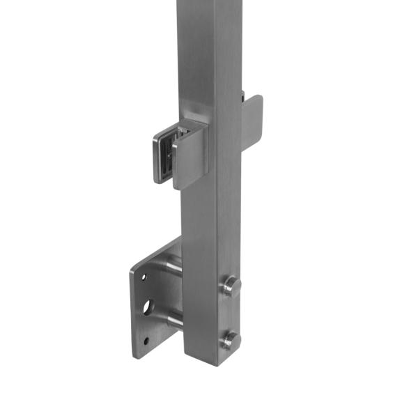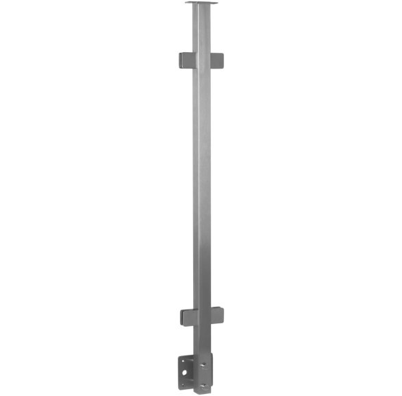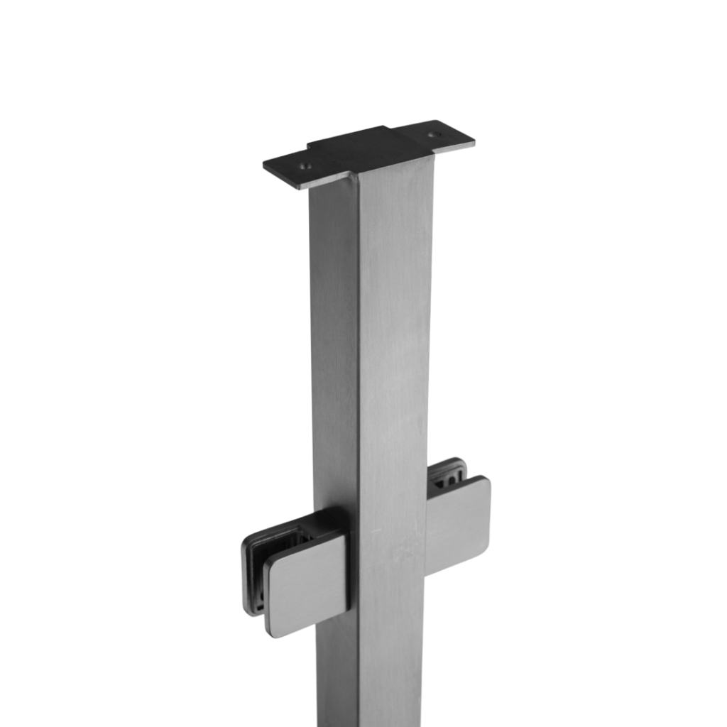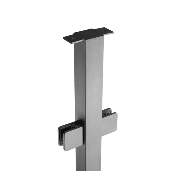 Kompletny słupek do samodzielnego skręcenia i zamocowania. Spawana konstrukcja ze stali nierdzewnej AISI 304 zapewnia wysoką wytrzymałość, a uchwyty 45 × 45 mm stabilnie zaciskają szkło o grubości 6 – 10,76 mm. Na szczycie słupka znajduje się blaszka montażowa z otworami pod śruby – do przykręcenia poręczy z profilu lub drewna.