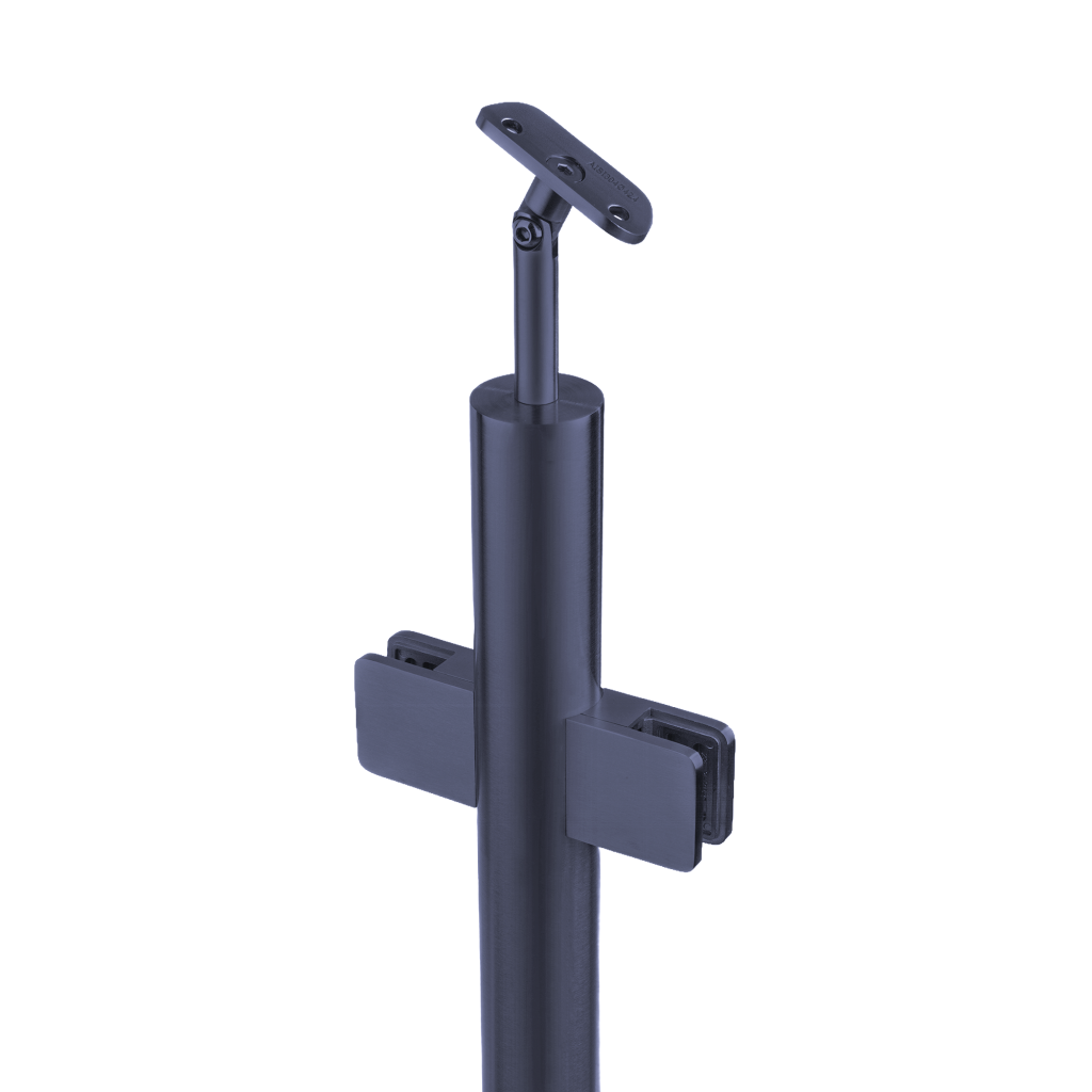Słupek balustrady z montażem bocznym – fi 42,4 mm z podporą poręczy (stałą lub regulowaną) – antracyt