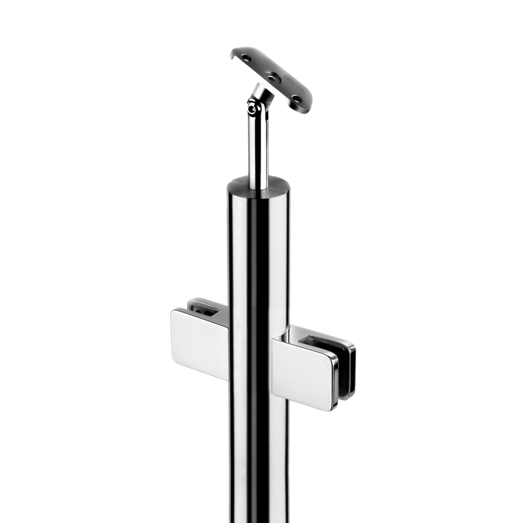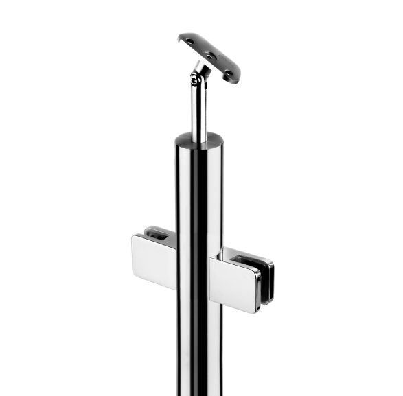 Słupek balustrady szklanej - montaż boczny - fi 42,4 z podporą poręczy polerowany