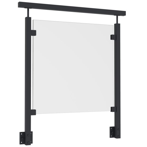 Balustrada szklana na słupkach 40x40 z poręczą - montaż boczny antracyt RAL 7016