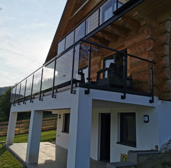 Balustrada szklana balkonowa czarny loft montaż boczny