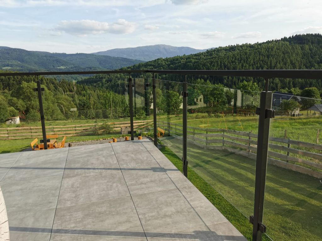 Balustrada szklana balkonowa na słupkach z poręczą czarny loft montaż boczny