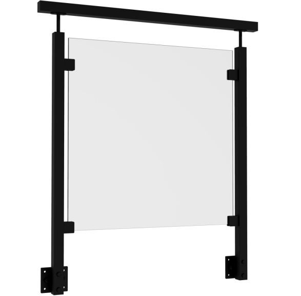 Balustrada szklana na słupkach 40x40 z poręczą - montaż boczny czarny RAL 9005