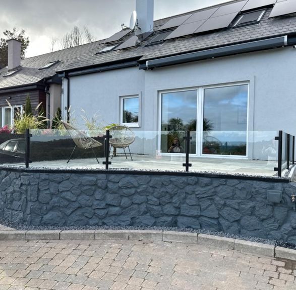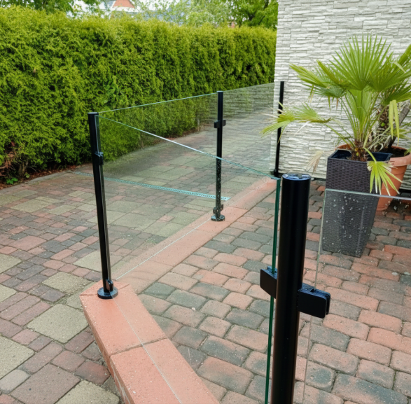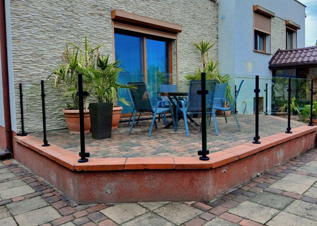 balustrada szklana tarasowa na czarnych słupkach szkło bezbarwne