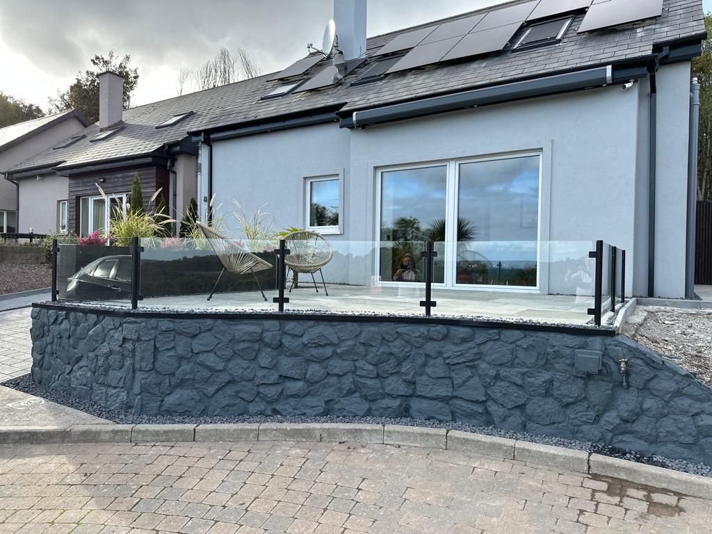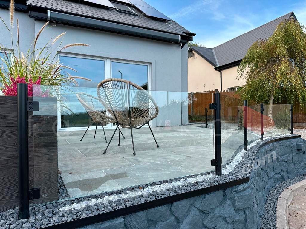Balustrada szklana tarasowa na czarnych antracyt szkło bezbarwne