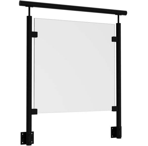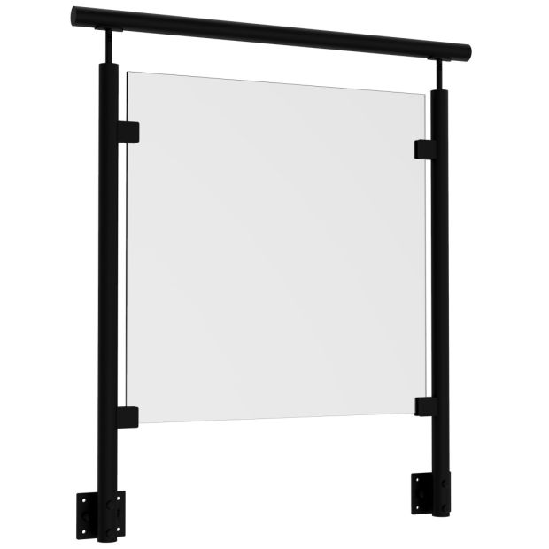 Balustrada szklana na słupkach fi 42,4 z poręczą - montaż boczny czarny RAL 9005