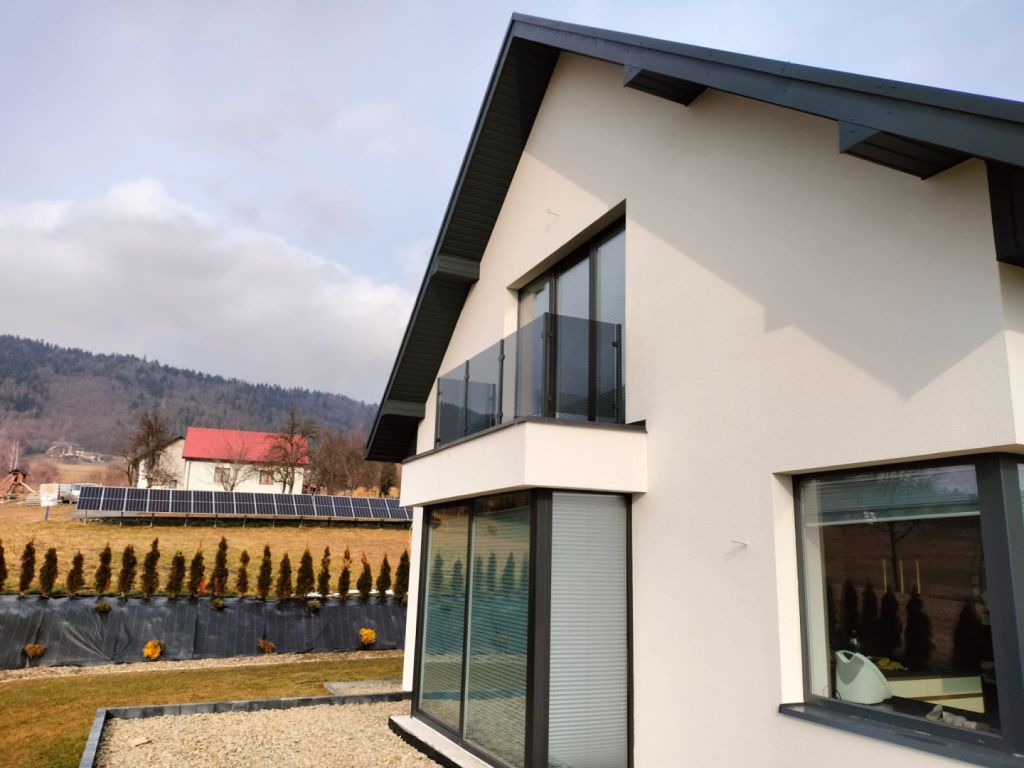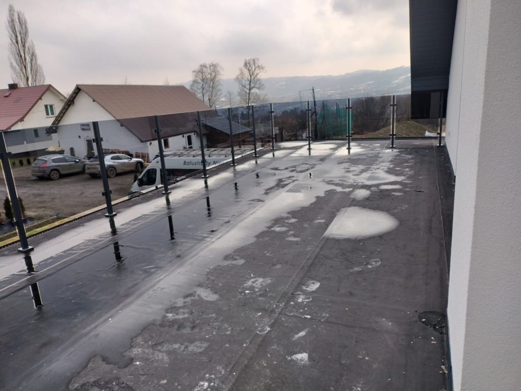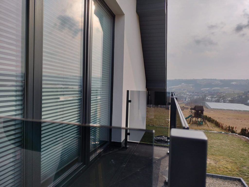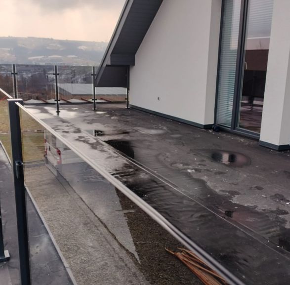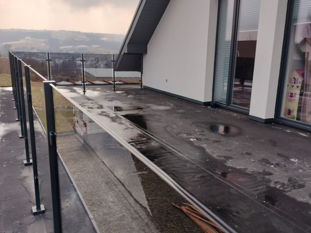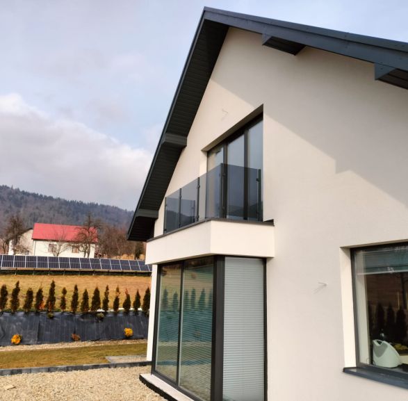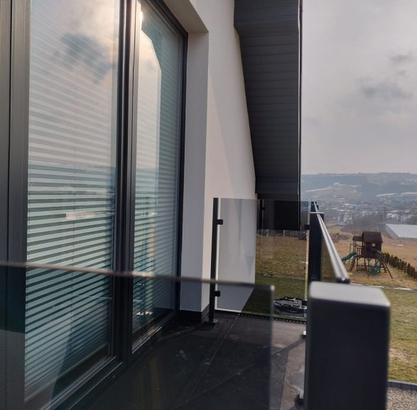 Balustrada nierdzewna ze szkłem na słupkach z profilu 40x40 - antracyt RAL 7016