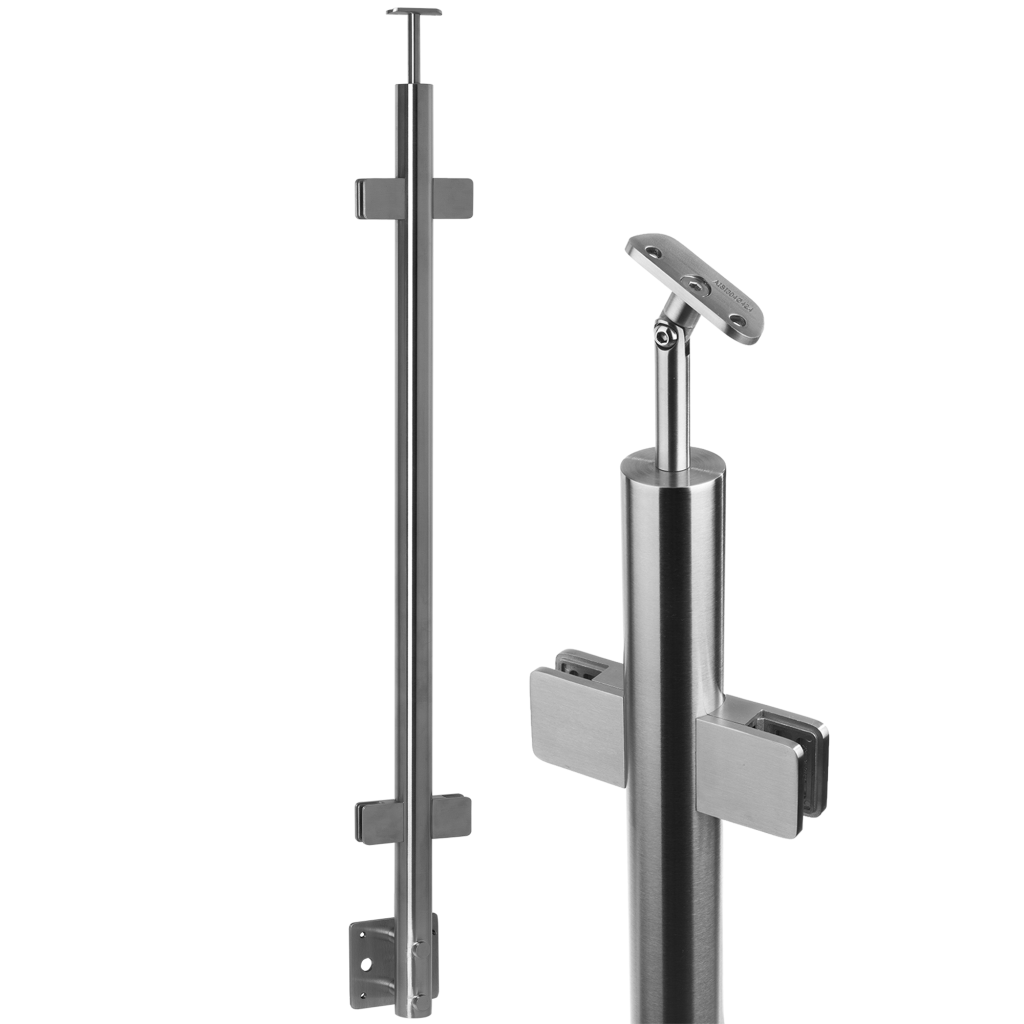 Słupek balustrady z montażem bocznym - fi 42,4 mm z uchwytem poręczy