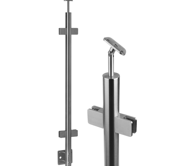 Słupek balustrady szklanej - montaż boczny - fi 42,4 z uchwytem poręczy