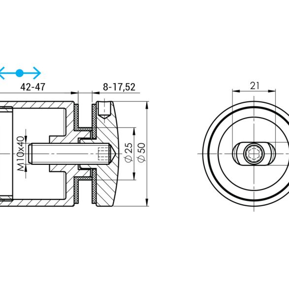 uchwyt punktowy szkła rotula fi 50 regulowany FLEX 2 - rysunek techniczny